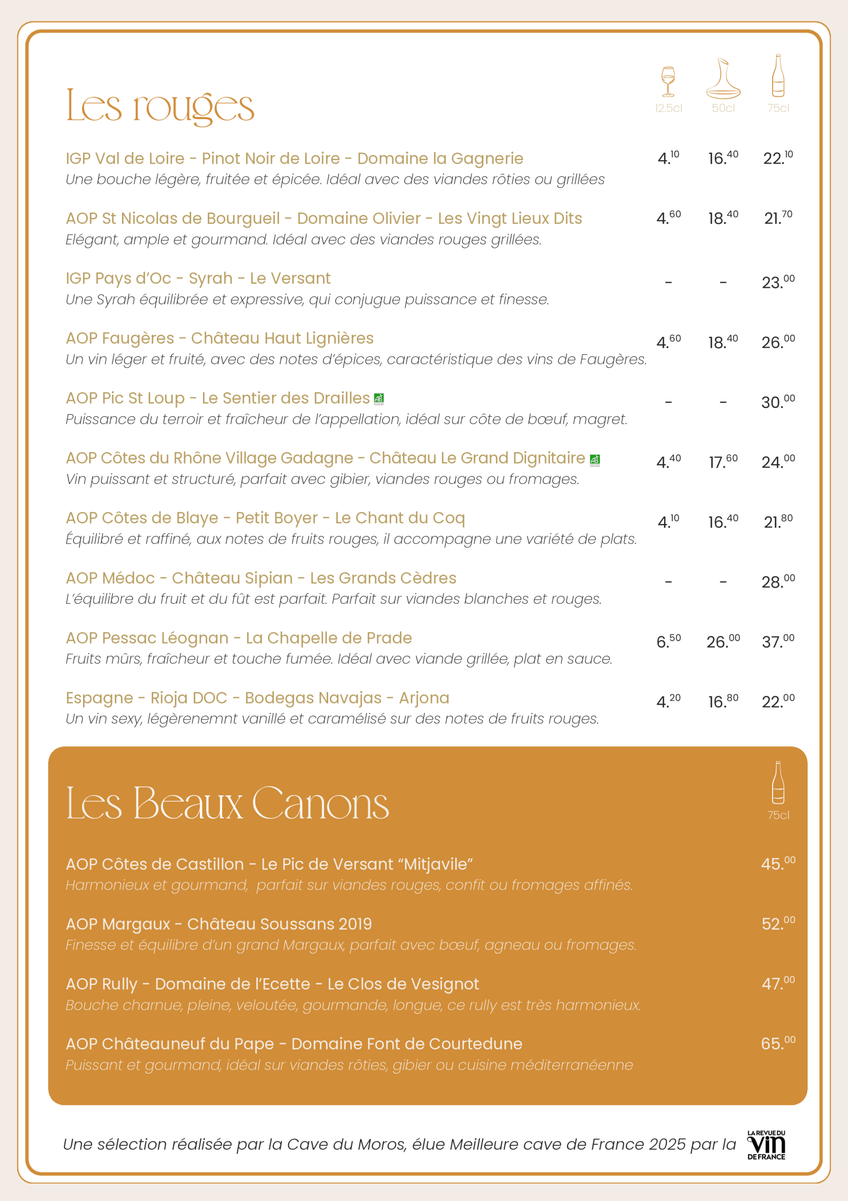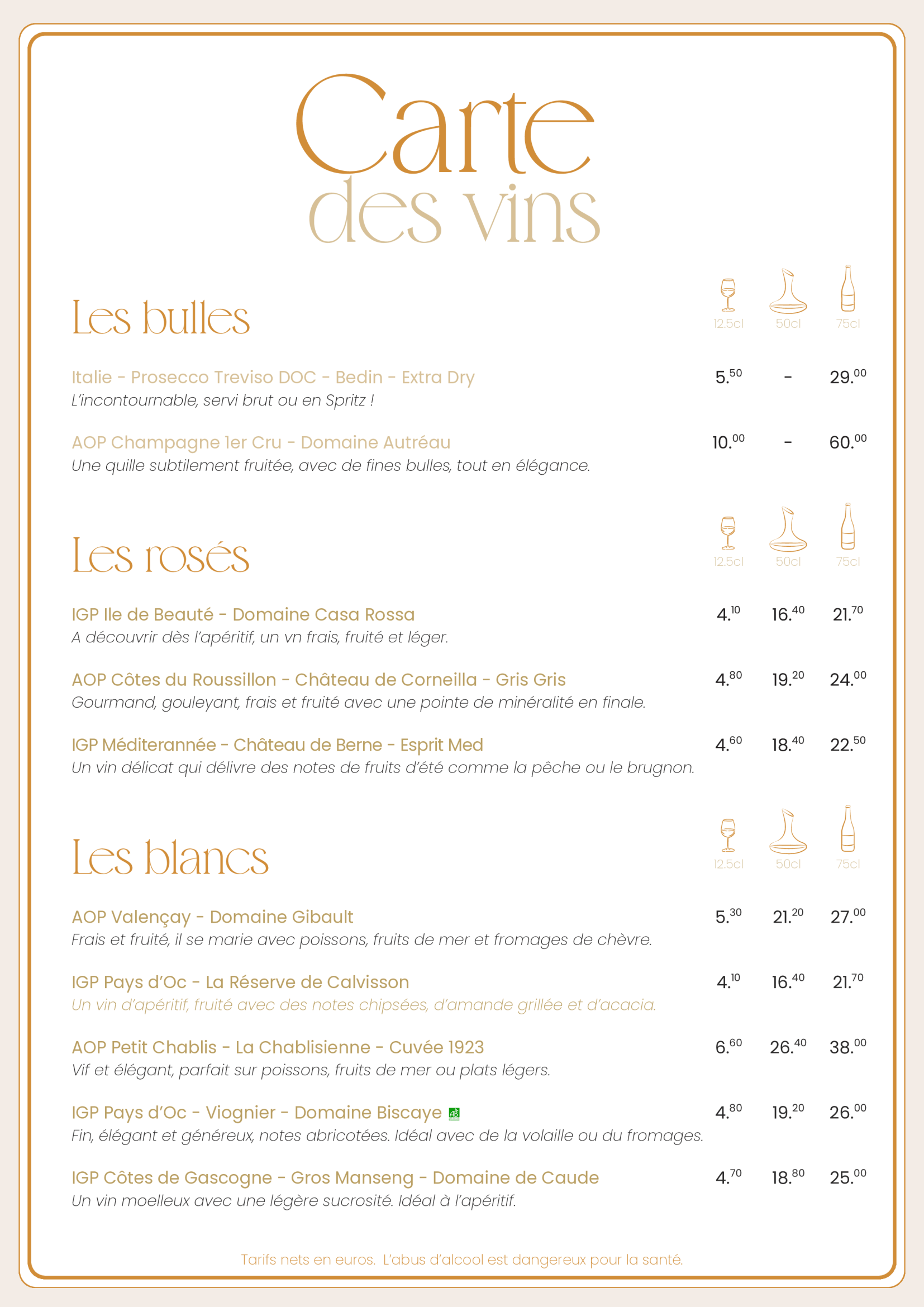 Nous vous proposons une carte avec des produits de saison.